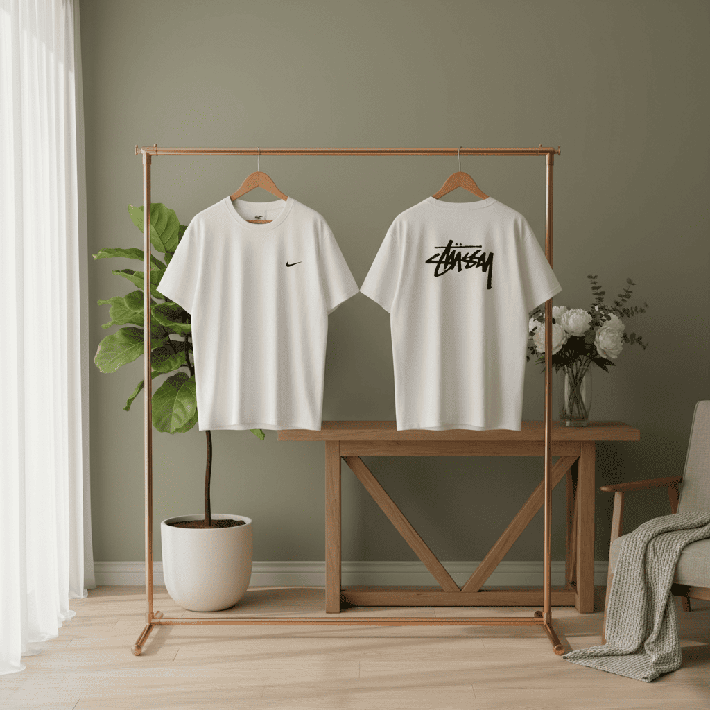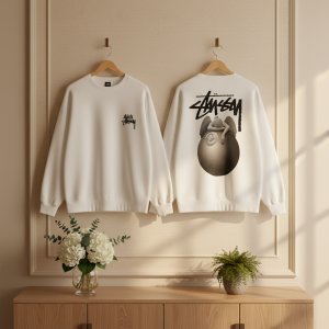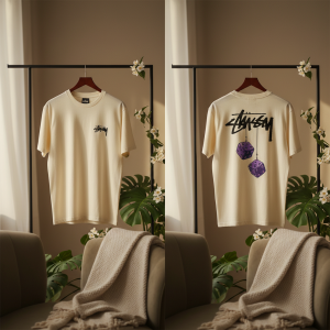 Stussy White Collaboration T-Shirt made from premium cotton, features minimalist black logo on front and street-style graphic print on back; unisex, breathable, and blending vintage with modern fashion.