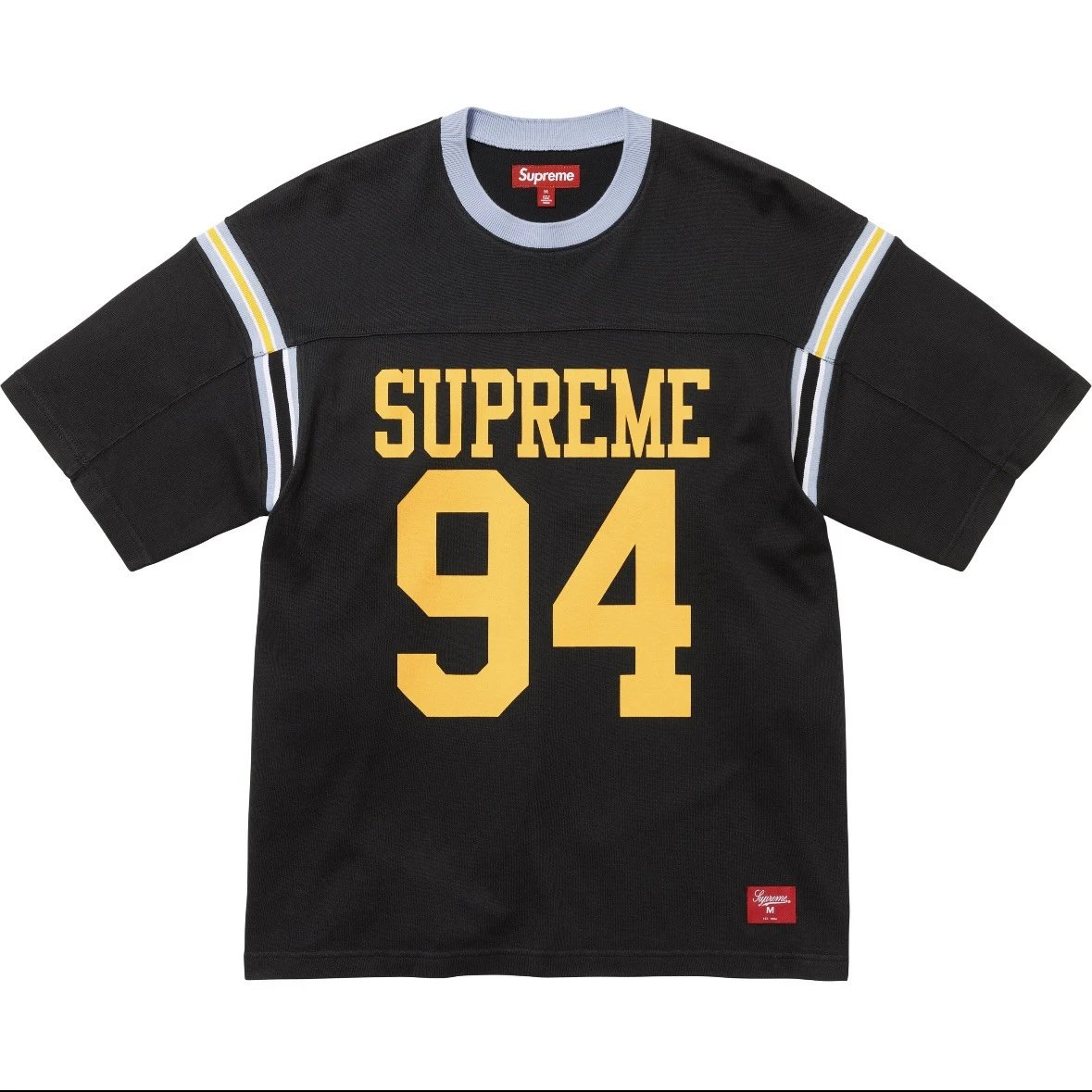 Supreme Black Vintage Sports T-Shirt, crafted from premium cotton, features bold yellow “94” and logo on chest. Unisex streetwear style, comfortable, versatile, and perfect for casual fashion.