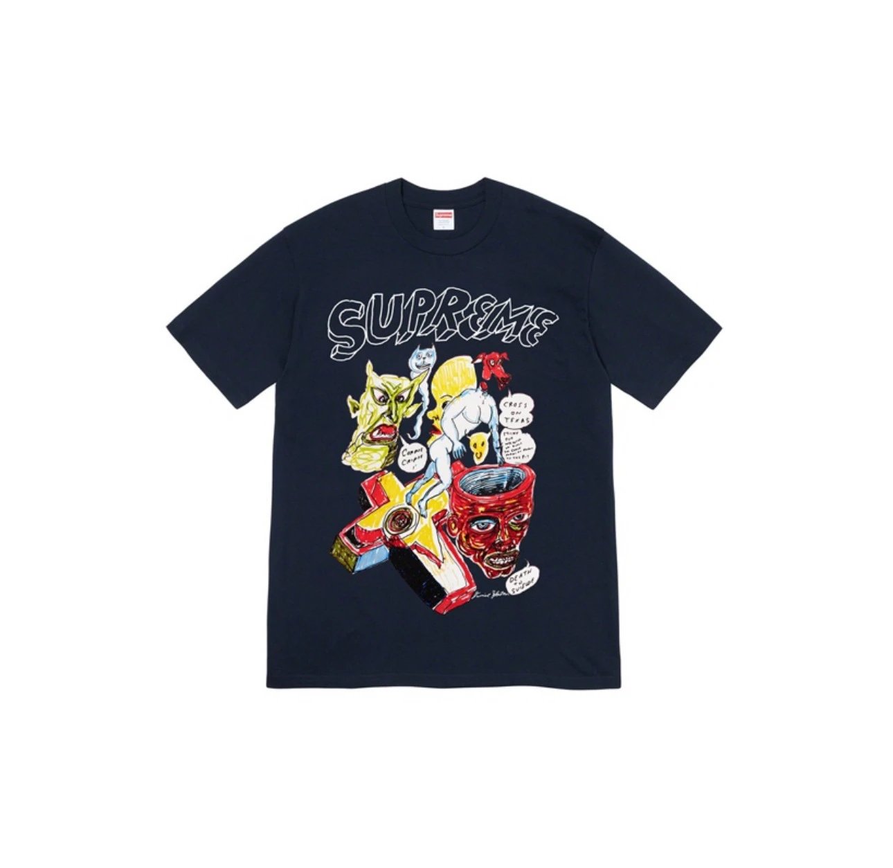 Supreme Black Comic Print T-Shirt made of premium cotton, soft and breathable. Features bold hand-drawn artwork with logo design for a street art vibe, unisex fit, perfect for casual or urban style.