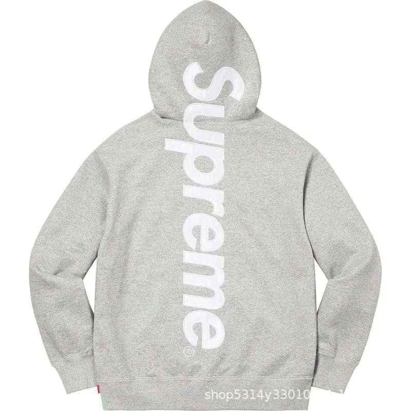 Supreme Gray Hoodie – made from high-density pure cotton fabric, featuring vertical white logo on the back. Minimalist yet bold streetwear style, loose fit for men and women, perfect for urban casual looks.
