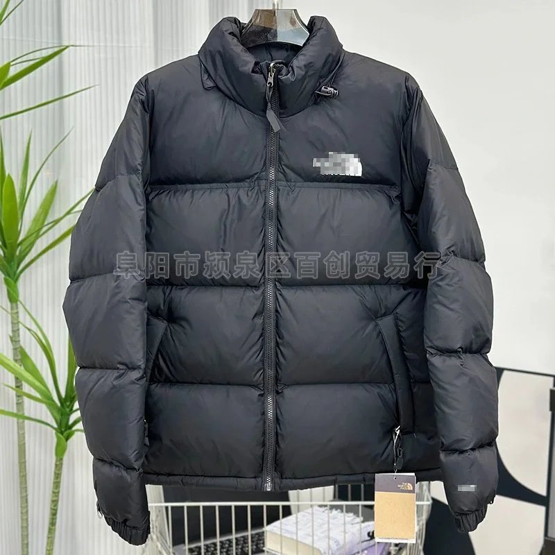 The North Face black down jacket with windproof, water-resistant nylon and high-loft goose down, lightweight warmth, stand collar, smooth zipper, unisex for winter commuting and outdoor adventures.