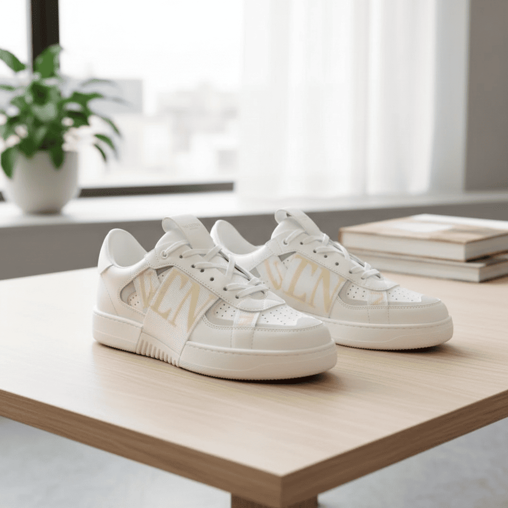 Valentino White Red Logo Leather Sneakers