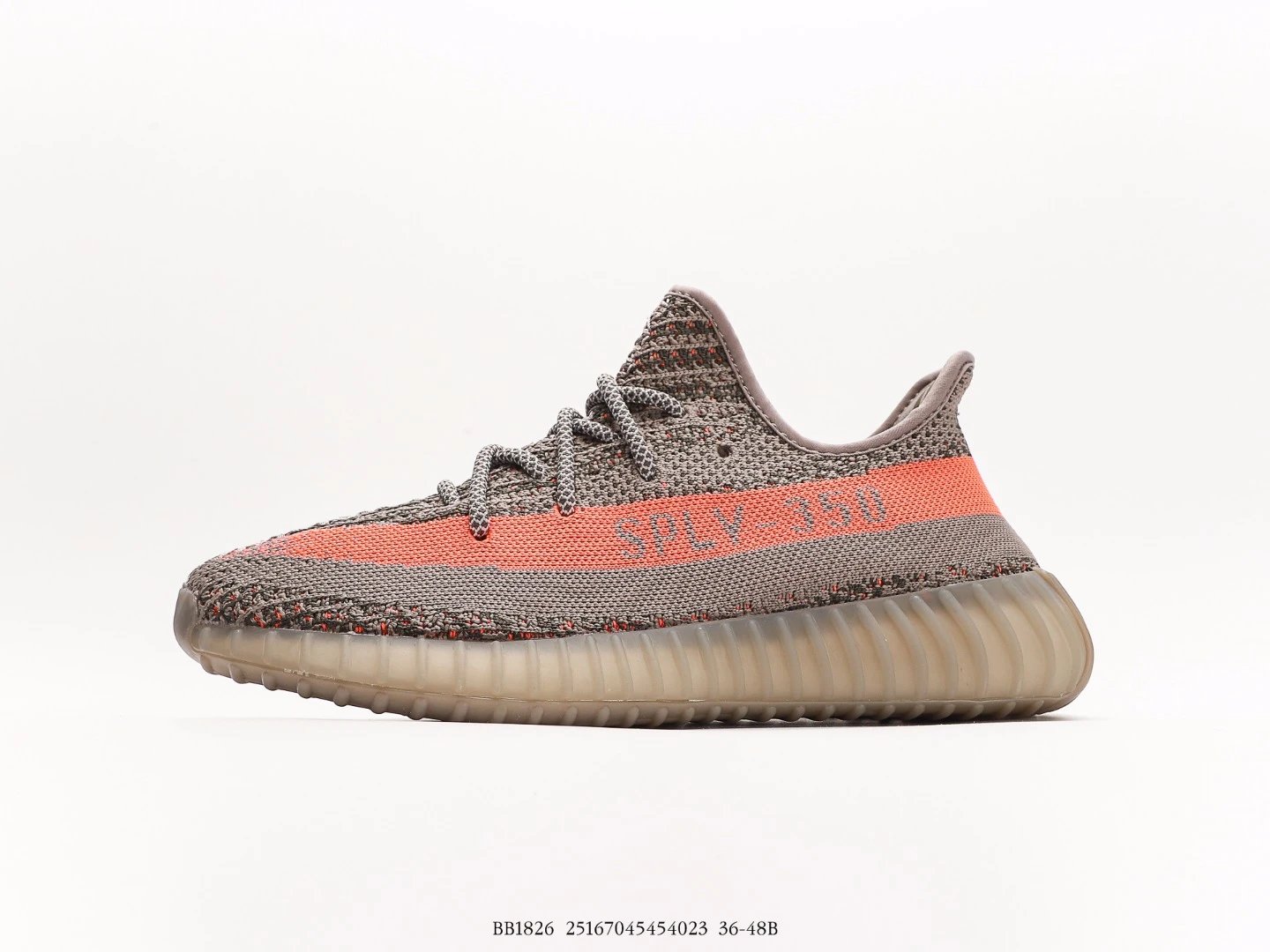 Yeezy BOOST 350 V2 Grey Orange sneakers crafted with lightweight Primeknit and transparent midsole offer comfort, breathability, and support in a modern, unisex streetwear design.