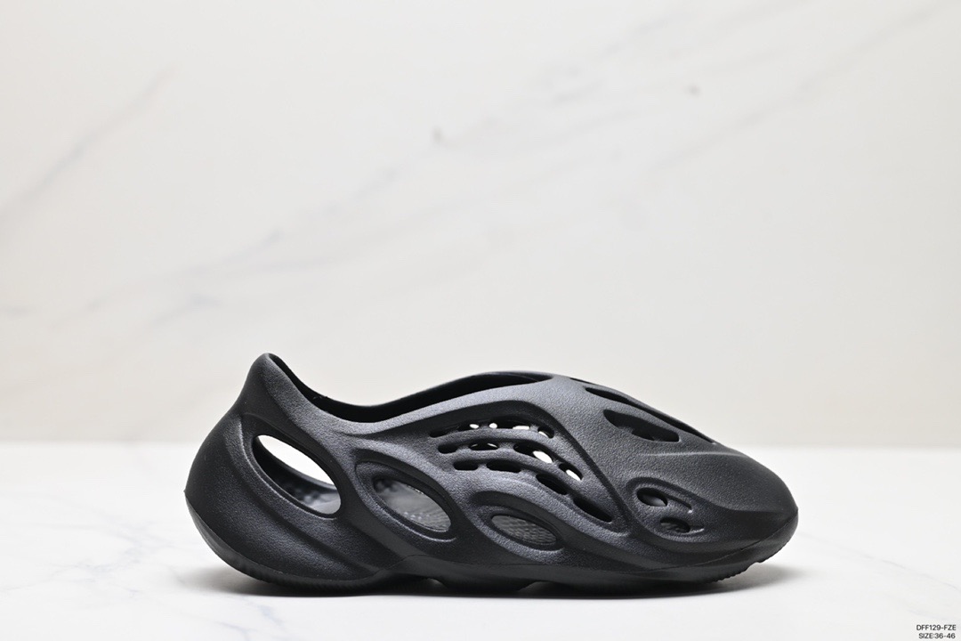 Yeezy Black Foam Clogs crafted from lightweight EVA material, featuring a futuristic streamlined design, breathable comfort, and gender-neutral style for casual and edgy streetwear looks.